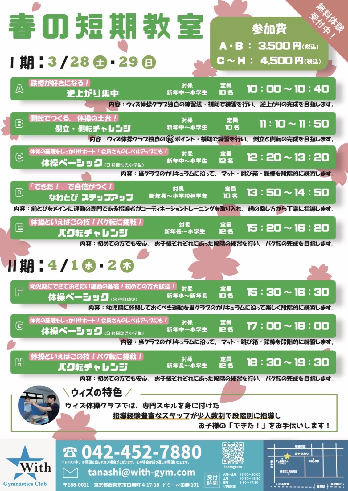 田無店 春の短期教室 詳細につきましては下記をご確認下さい。